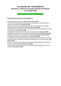 CALENDARIO DEL PROCEDIMIENTO – EOI 7 PALMAS-2